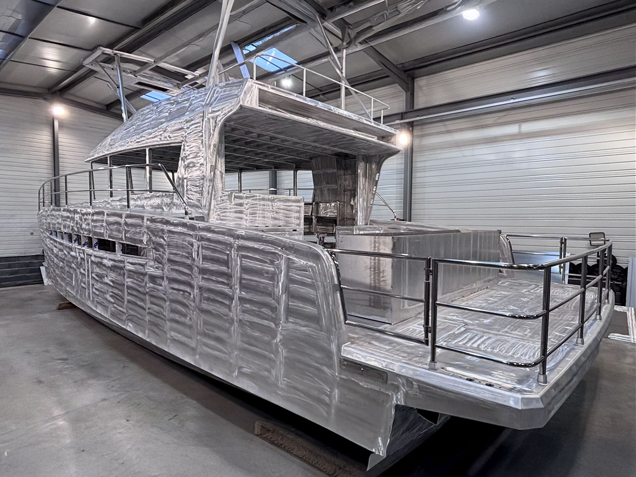 Notre entreprise a fait le choix de la spécialisation : nous concevons et construisons un modèle unique de catamaran en aluminium à propulsion électrique, fruit d’une expertise technique approfondie et d’un processus de fabrication parfaitement maîtrisé. Ce catamaran a été pensé pour offrir un équilibre optimal entre performance, confort, fiabilité et durabilité, répondant aux exigences de la navigation moderne tout en limitant son impact environnemental.